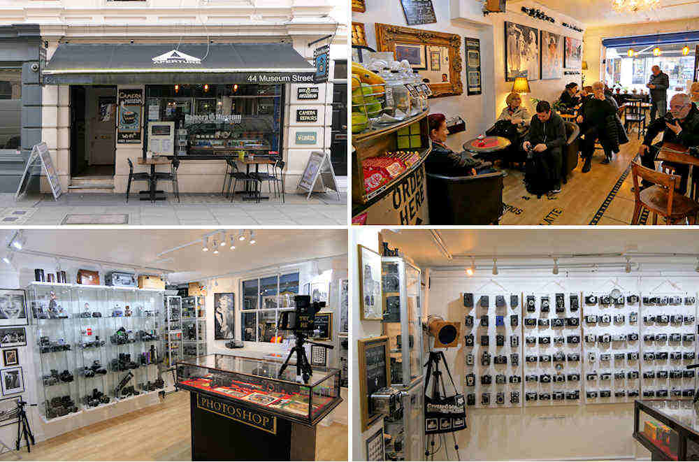 Im gleichen Quartier gibt es das «Camera Museum», ein Mix aus Camerashop, Museum und Coffeshop. Die Gebrüder Adrian und Patrick Tang hatten das Geschäft 1999 gegründet, mit der Idee, neben ihrem Kamerageschäft den Kunden Kaffee und Cakes anbieten zu können und dabei die Kommunikation zu fördern. Mit der Zeit hatten sich allerhand interessante Kameras angesammelt, die bald auch im Keller einen Ausstellungsplatz fanden. Keine grosse Sammlung, die das Wort «Museum» nur knapp verdient, doch hat es einige recht interessante Stücke darunter, die man sonst kaumwo findet. 2012 trennte sich Patrick von seinem Bruder und eröffnete den «Aperure Store» in der Nähe der Oxford Street, so dass Adrian heute das «Camera Museum» alleine weiterführt. Der Store ist auf Topmodelle von Hasselblad, Rolleiflex, Leica und Nikon spezialisiert und repariert die Kameras auch.
