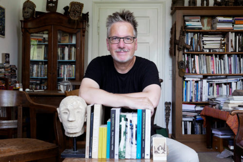Bernd Stiegler in seinem Arbeitszimmer, umgeben von vielen literarischen und kulturellen Schätzen (Foto: Monica Boirar)