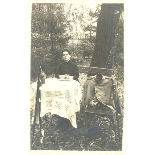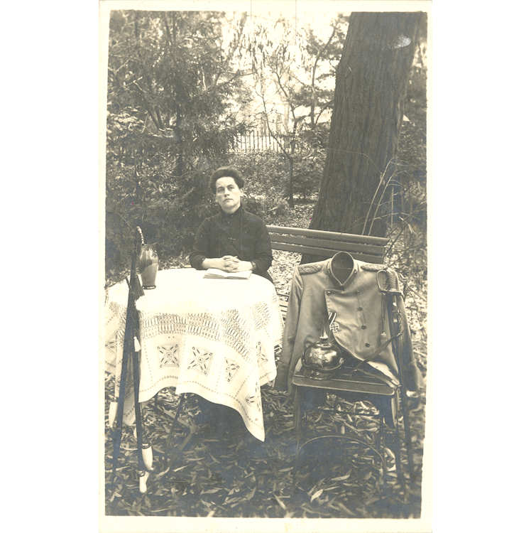 Ein Symbolbild für die erschütternden Folgen der abertausend toten Soldaten des Ersten Weltkriegs. Im Stuhl neben der trauernden Witwe liegt die Uniform ihres verstorbenen Gatten als das, was von ihm übrigblieb.