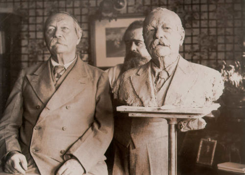 Arthur Conan Doyle, der geistige Vater von Sherlock Holmes, sitzt neben der naturalistischen Büste seines Antlitzes. Das Doppelporträt belegt, dass die Darstellung des Bildhauers eine authentische ist und dass die Fotografie in manchen Fällen als Beweismittel durchaus taugt.