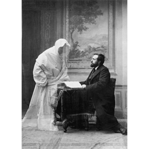 Über viele Jahrzehnte hinweg wurde die spiritistische Fotografie als Beweis, ja gar als wissenschaftlicher Beleg von Geistern und Phantomen genutzt. Diese Gespensterfotografie von Paul Nadar um 1890 war jedoch ironisch gemeint.