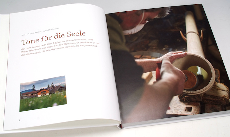 Die Bildreportagen sind von Yannick Andrea fotografiert, der im Bündnerland wohnend persönlich einen sehr starken Bezug zu vielen dieser Berufe hat, der mit vielen dieser Leute befreundet ist und deshalb genau weiss, auf welche Details es ankommt, um die Berufsbilder in weniger Bildern treffend darstellen zu können. Es werden in den Bildern sowohl die Menschen in ihrem Arbeitsumfeld ebenso subtil porträtiert, wie in Detailaufnahmen die wesentlichsten Handgriffe und Utensilien gezeigt, mit denen Kunstwerke entstehen, die in ihrer Einzigartigkeit viele Liebhaber begeistern. Yannick versteht es, sich mit seiner Kamera und seinem Wissen um diese Berufe auf das Wesentliche zu konzentrieren und uns im stimmungsvollen, gekonnt dosierten Aufhelllicht Geschichten zu erzählen – Geschichten, von denen jede ein kleines aber wichtiges Stück Schweiz ist.