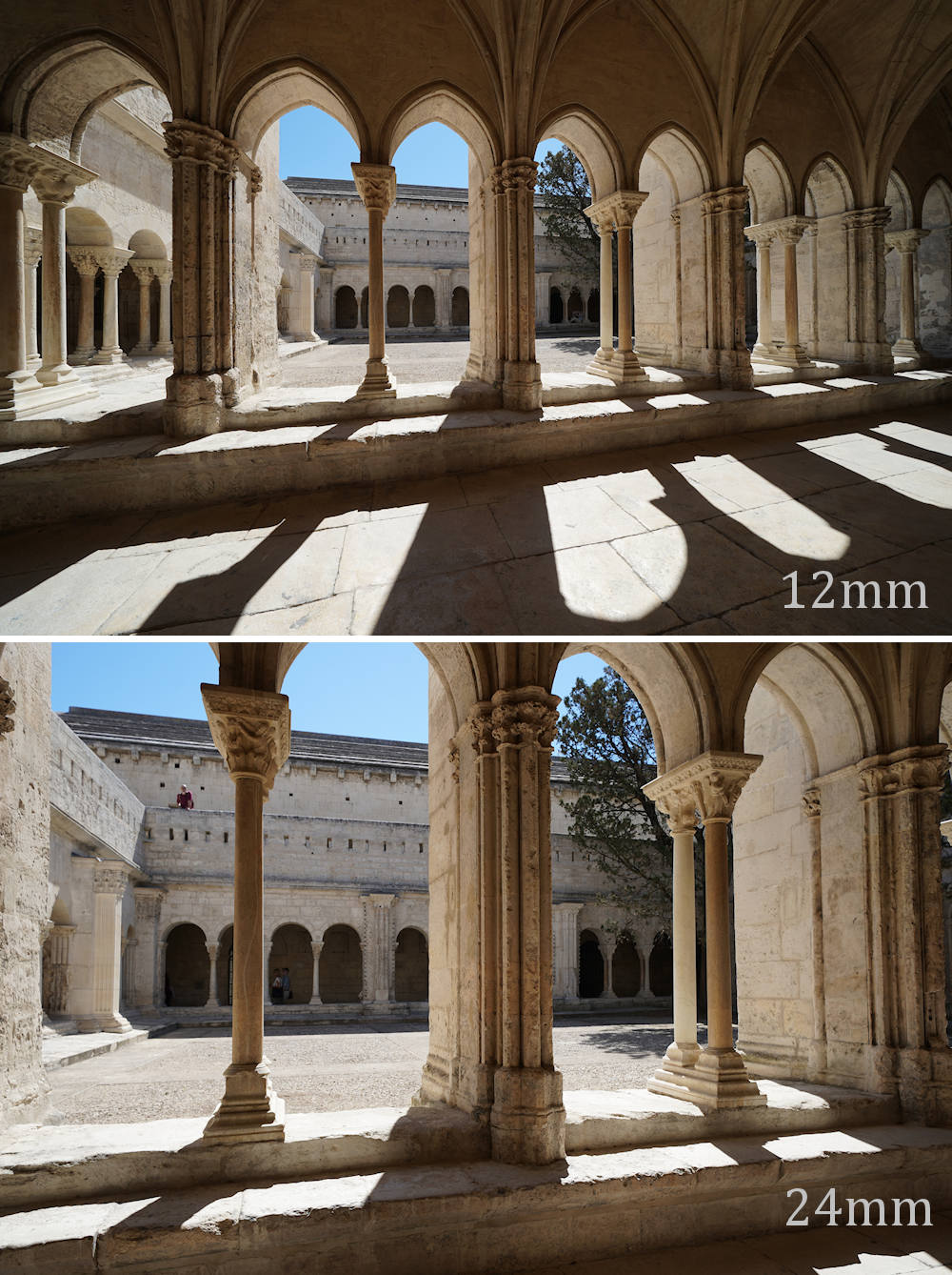 Der Brennweitenbereich von 12 bis 24 mm im Vollformat (und 18 bis 36 mm bei APS-C) ist ideal und ermöglicht aussergewöhnliche Perspektiven und Bildwinkel. Hier ein paar Beispiel immer mit 12 und mit 24 mm im Vergleich: