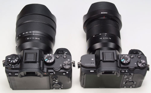 Auffallend an der Kamera selbst, zum Beispiel im Vergleich zur a7 II, ist der neue Bedienknopf links, welcher der Bildfrequenz (Lo 5B/s, Me 10B/s, Hi 20/Bs und Einzelbild), Selbstauslöser und Bracketing sowie den Fokussiereinstellungen (MF, DMF, AF-C und AF-S) dient. Übrigens sind alle Bedienungsräder mit einem Druckknopf verriegelt (halten und drehen), so dass sie sich nicht versehentlich verstellen können.