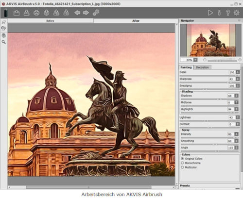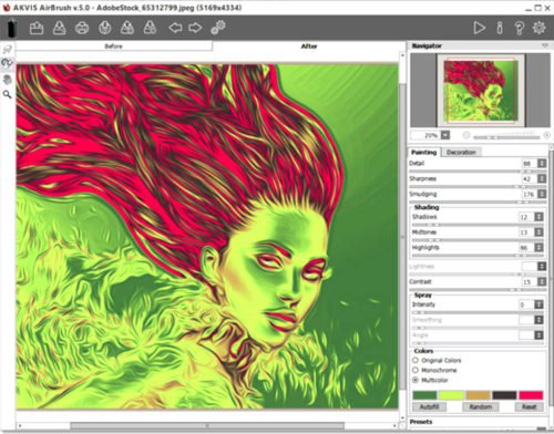 Akvis AirBrush 5.0 mit Mehrfarbig‐Modus und Spritzen‐Effekt