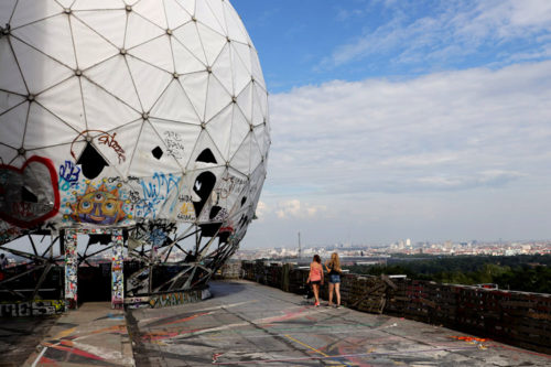 Rund 100 Meter ist der Teufelsberg hoch und bietet eine fantastische Aussicht auf die Stadt Berlin. Im Bild zu sehen ist eine der leeren Radarkuppeln.