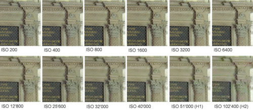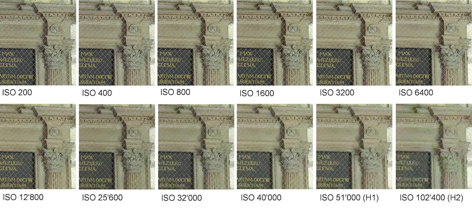 Dabei leistet die Rauschunterdrückung bei JPEG Erstaunliches, wie dieses Beispiel beim höchsten ISO-Wert von 102’400 zeigt.