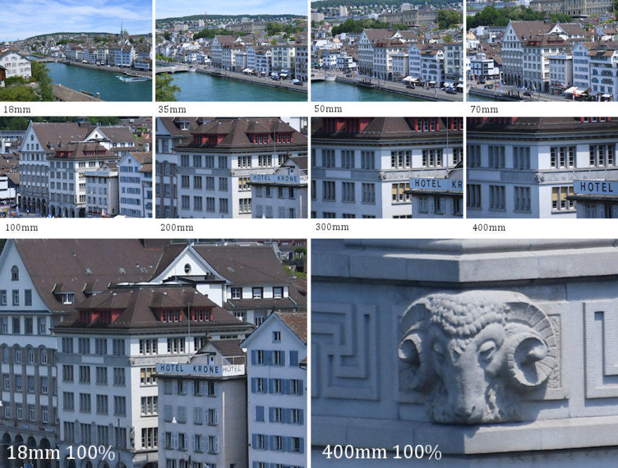Blick vom «Lindenhof» in Zürich. Der Zoombereich ist verblüffend. Er reicht ohne Standortveränderung von der grossen Übersicht bis hin zum kleinsten Detail – und dies mit einer beachtlichen Schärfeleistung.