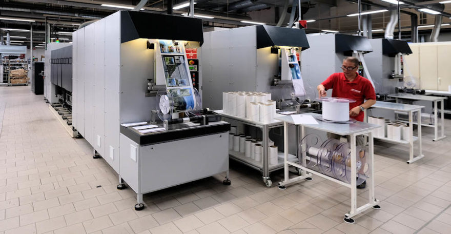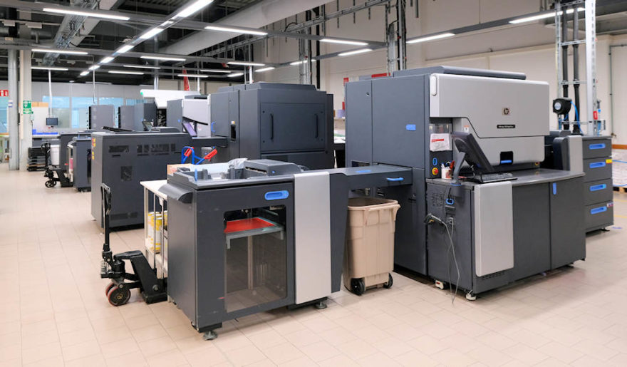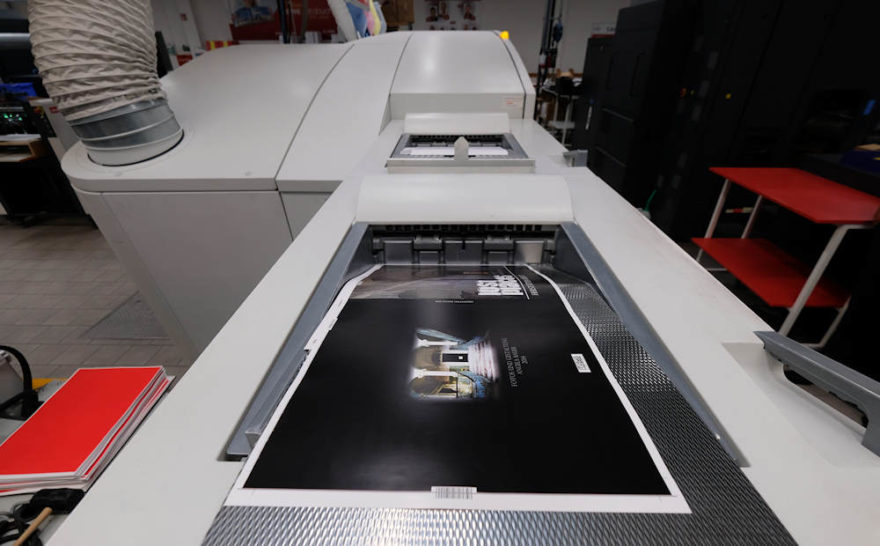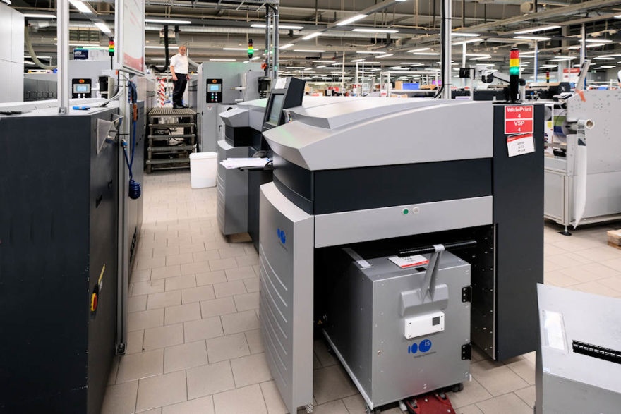 Insgesamt sechs Digitaldruckmaschinen HP Indigo stehen in einer Reihe und produzieren den Inhalt der Fotobücher am laufenden Band. Der Druck erfolgt auf einem speziellen Papier für den Digitalfotodruck bis zur Bogengrösse A3. Die Produktion auf echtem Fotopapier erfolgt auf einem «WidePrint»-Belichter der Schweizer Firma Imaging Solutions. Dazu später mehr…