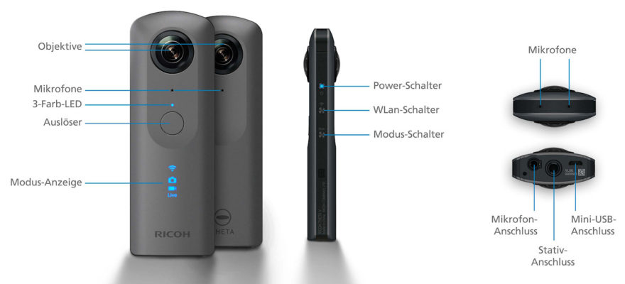 Die Ricoh Theta V in der Farbe Grau Metallic wird ab September 2017 für CHF 499.– (UVP) erhältlich sein. Das Datenblatt gibt es hier zum downloaden.