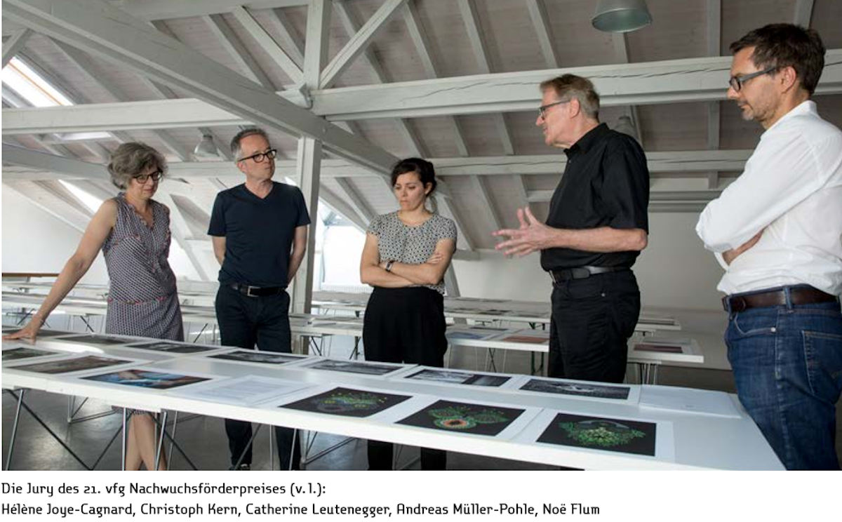 Die Jury des 21. vfg Nachwuchsförderpreises für Fotografie setzte sich zusammen aus Noë Flum, Fotograf, Hélène Joye Cagnard, Direktorin der Bieler Fototage, Christoph Kern, Fotograf und Galerist, Catherine Leutenegger, Fotografin, Andreas MüllerPohle, Fotograf und Herausgeber des Magazins «European Photography».