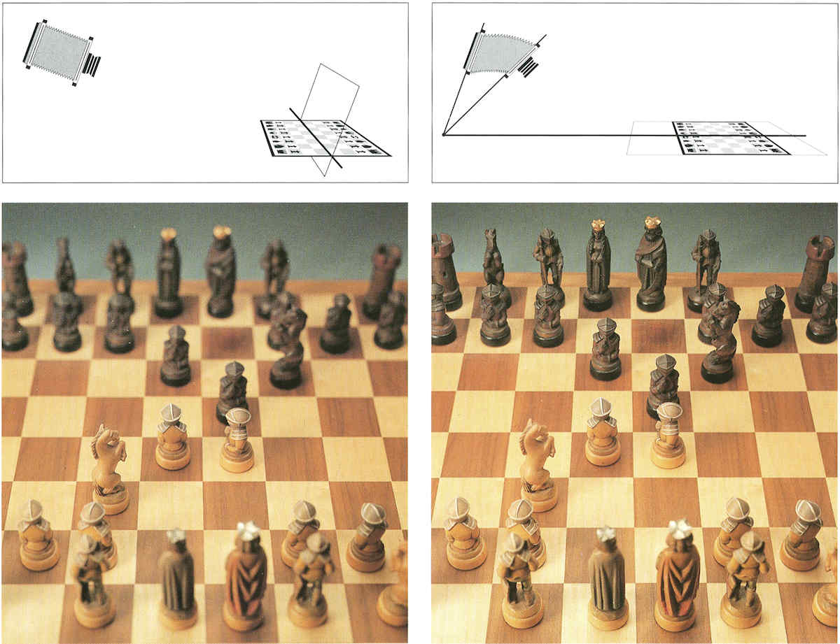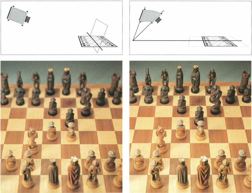 Die Schärfedehnung nach Scheimpflug ist mit einer verstellbaren Fachkamera sehr einfach zu bewerkstelligen: Schwenkt man die Objektivstandarte so, dass sich Motiv-, Objektiv- und Bildebene in einer Geraden schneiden, wird die Schärfeebene so in die Motivebene gelegt, dass das Bild bei offener Blende von vorne bis hinten scharf ist. Quelle: Urs Tillmanns / Sinaredition