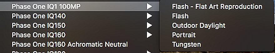Capture One Pro bietet für die Digitalbacks von Phase One bis zu fünf verschiedene Kameraprofile für verschiedene Lichtsituationen – und für alle übrigen unterstützten Digitalkameras mindestens ein bis zwei sehr gute Profile. Letztere sind sogenannt generische Profile, welche in fast allen Situationen gute, farbneutrale Resultate liefern sollen.