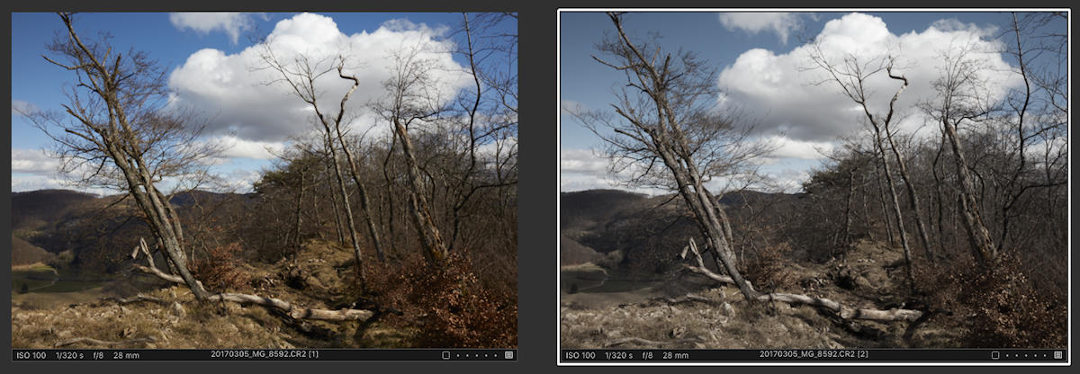 Bild links mit, rechts ohne Kameraprofil (in Capture One Pro 10 dargestellt)