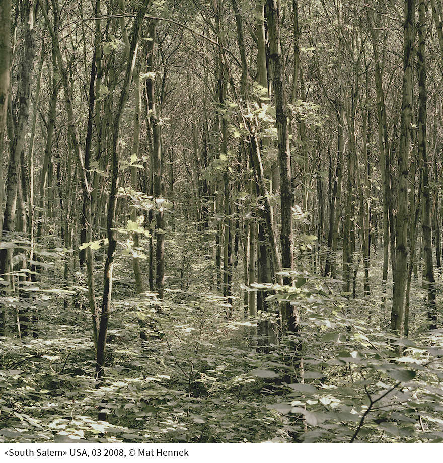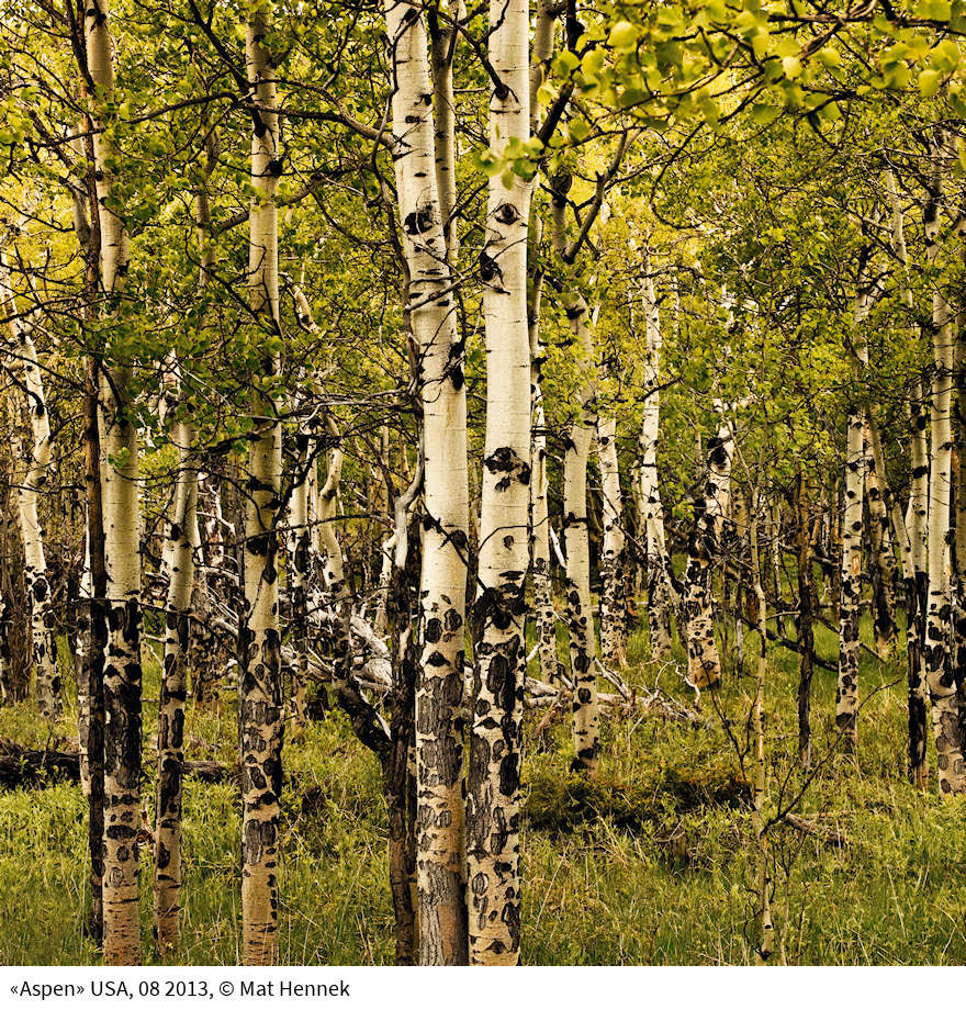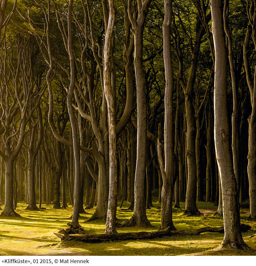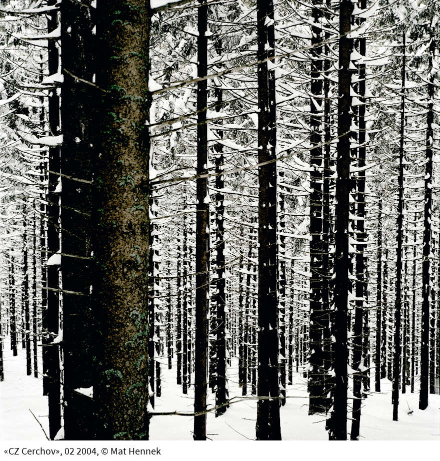 Die Waldlandschaften von Mat Hennek sind aussergewöhnlich – aussergewöhnlich, weil sie pur und auf das Wesentliche reduziert sind. Die Grossformatbilder führen uns vor Augen, wie unterschiedlich Wälder in den verschiedenen Erdteilen sein können. Dabei fotografiert Mat Hennek nicht die Gesamtansichten, sondern er reduziert seine Waldansichten auf die Stämme – lässt Wurzel und Kronen weg. So, wie wir Bäume wahrnehmen, wenn wir durch die Wälder streifen. Und so, wie Mat Hennek seine Motive empfindet, bevor er sie mit seiner Grossformatkamera fotografiert. Bäume faszinieren ihn – und uns. Bäume strahlen Ruhe aus. Bäume regen zum Denken an und entführen uns aus dem Alltagstrott in ein beruhigendes Umfeld. Genauso wirken die «Woodlands» von Mat Hennek auf uns.