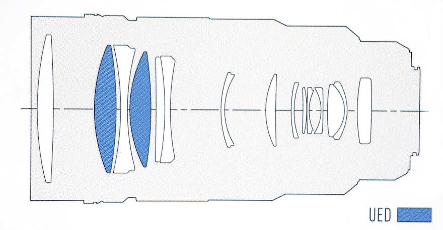 | Optische Konstruktion | 15 Linsen in 13 Gruppen (2 UED Linsen) |