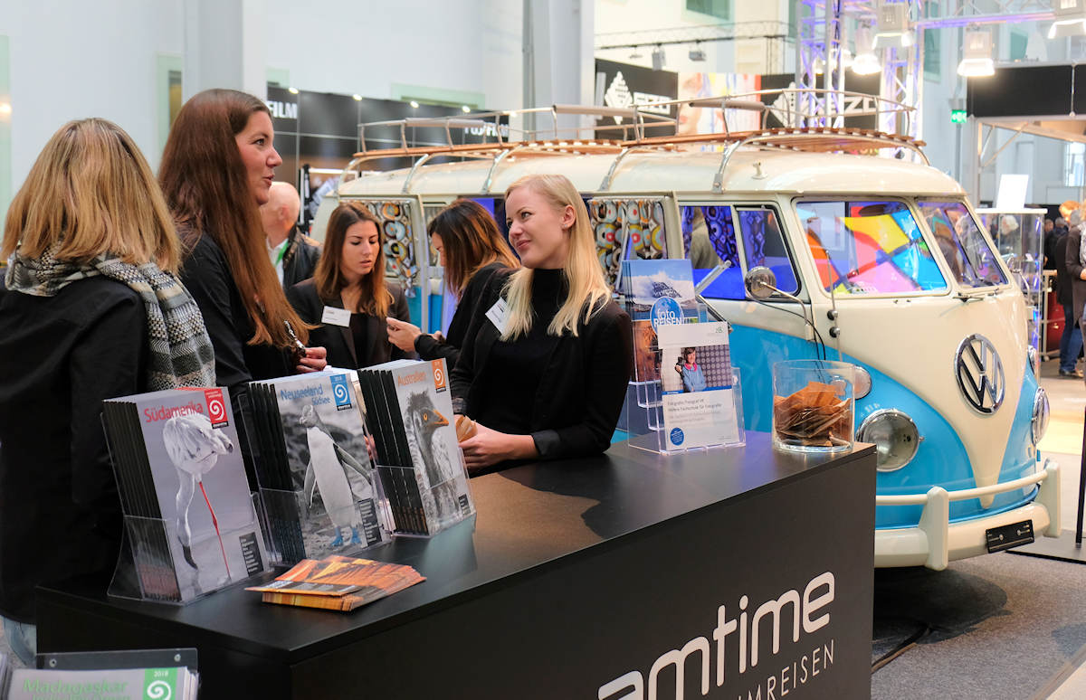 Der Oldtimer VW-Bus aus den 1950er-Jahren ist ein origineller Blickfang bei Dreamtime Travel
