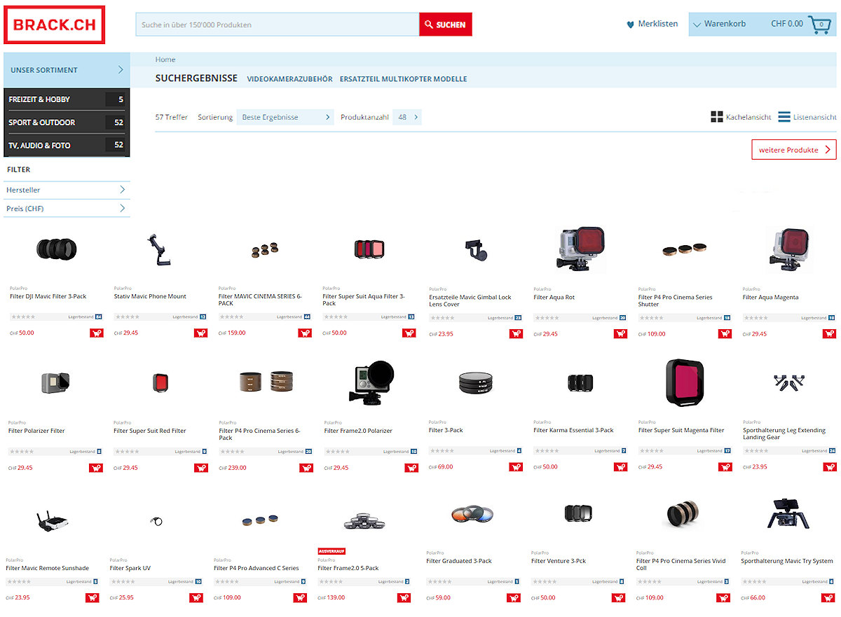 Das derzeitige Liefersortiment von PolarPro finden Sie als Endkunde auf der Webseite von Brack.ch und als Wiederverkäufer bei Alltron.ch