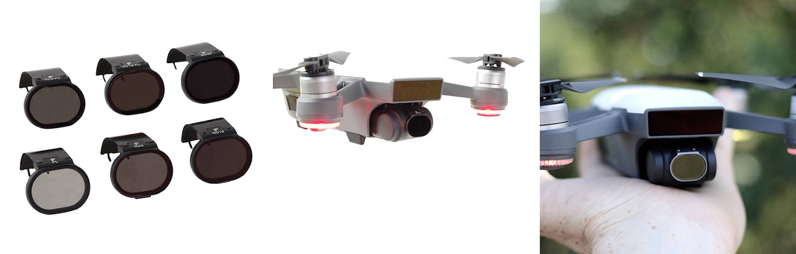 Filtersatz Neutral Density/Polfilter für DJI Spark im Sechserpack (Polfilter, ND8/PL, ND16/PL, ND8, ND16 und ND32 Filters). Die Glasfilter werden mit der Spezialhalterung einfach vor dem Objektiv angeklickt. Bestellnummer 602947, Preis: CHF 149.00 (UVP inkl. Mwst)