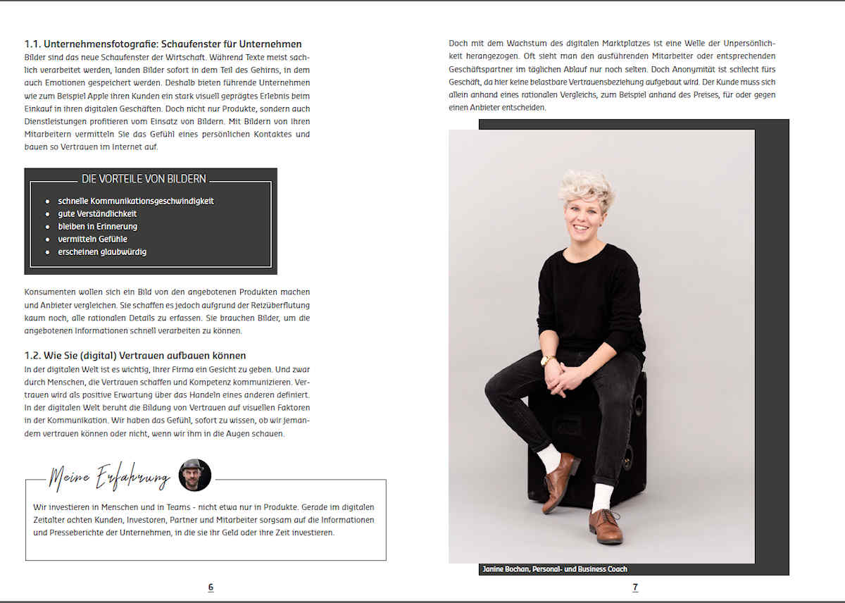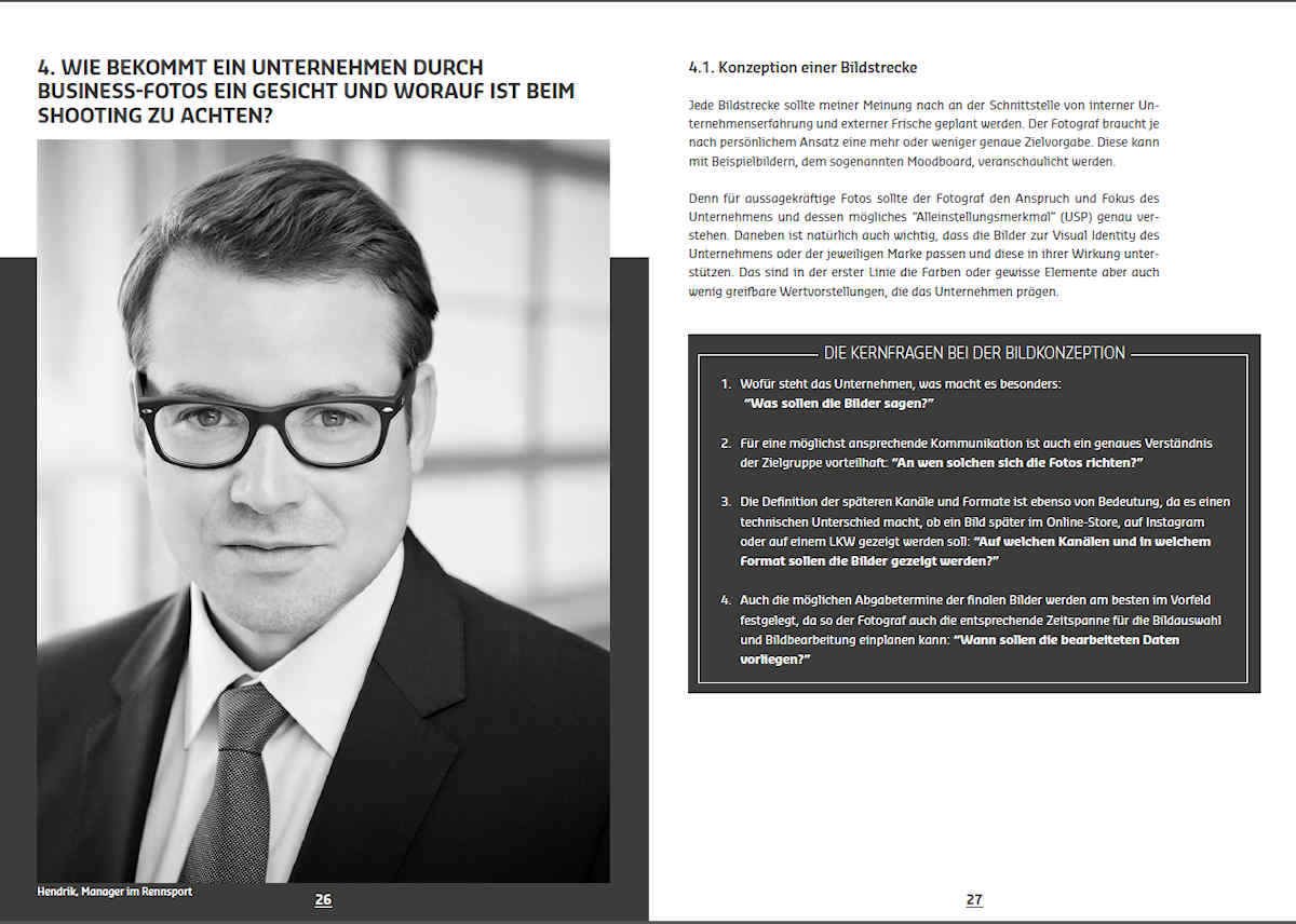 Zu diesem Thema hat Alexander Klebe ein Buch geschrieben, das kostenlos heruntergeladen werden kann (Link am Ende des Artikels). Es vermittelt wertvolle Tipps zur Gestaltung von Unternehmensfotografien, ist eine Checkliste für die eigenen Mitarbeiter, enthält wichtige Informationen rund um das Thema Business-Fotografie und gibt praxisnahe Tipps vom Profi.