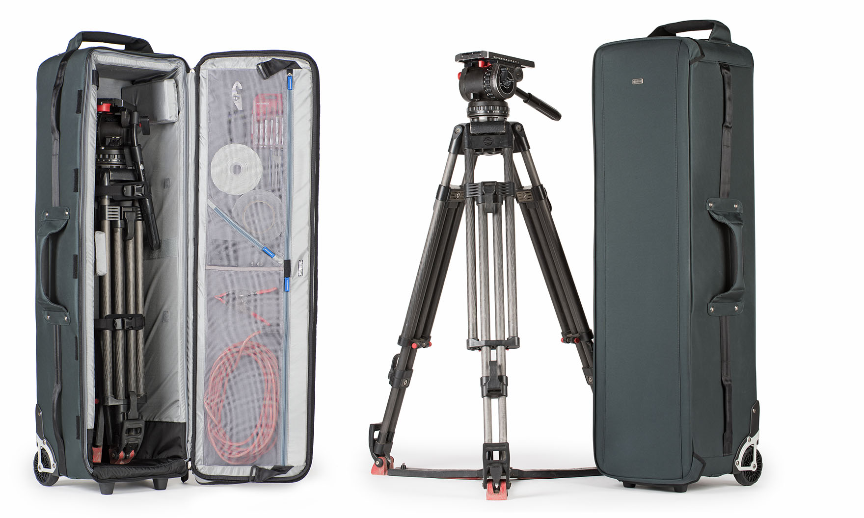 Think Tank hat jetzt auch Rollkoffer für (Video-)Stative: Der neue «Video Tripod Manager 44» bietet Platz für ein voluminöseres Stativ und Zubehör.