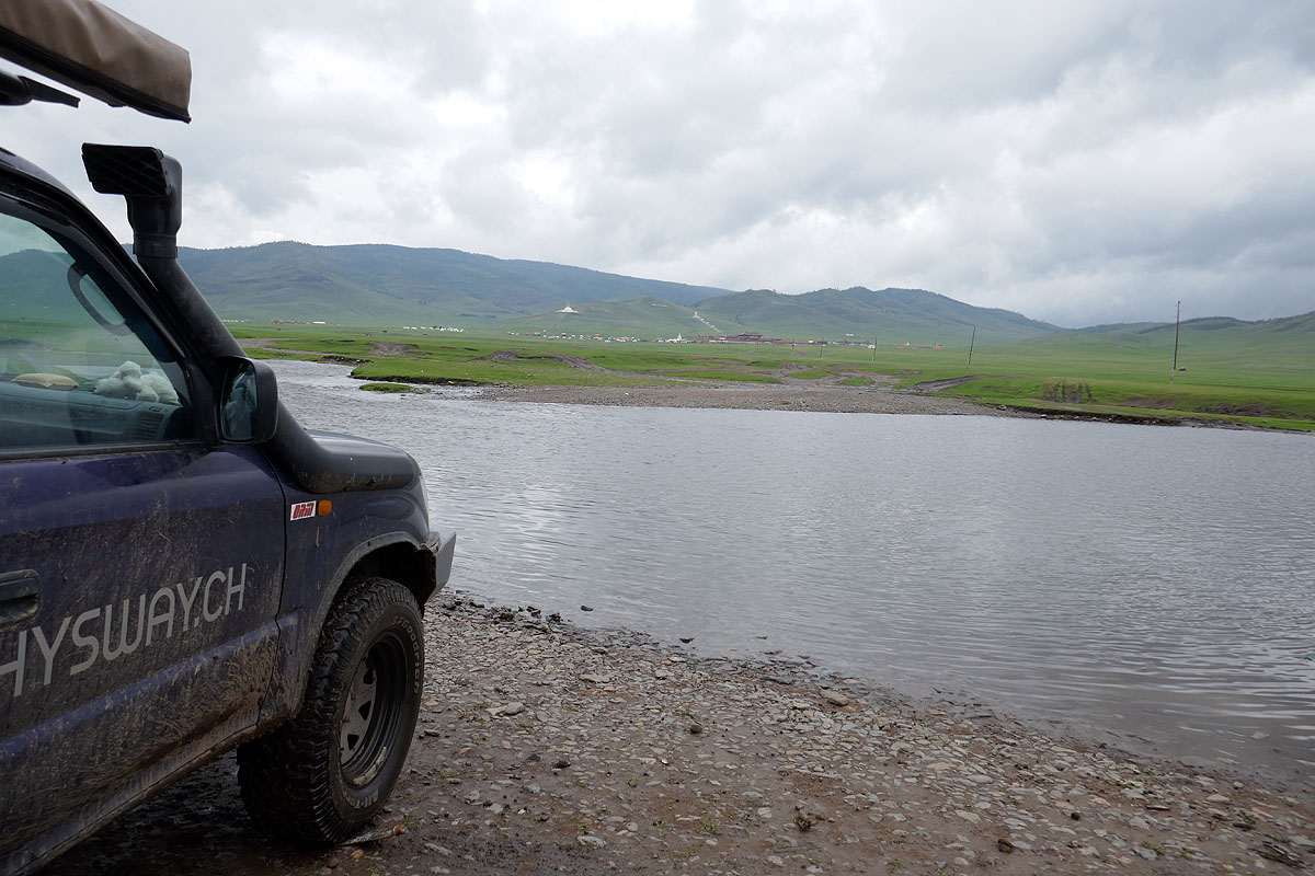 In der Mongolei sind die Strassen an einem Flussufer plötzlich zu Ende. 4×4 ist hier Bedingung. Aber, wie tief ist der Fluss?