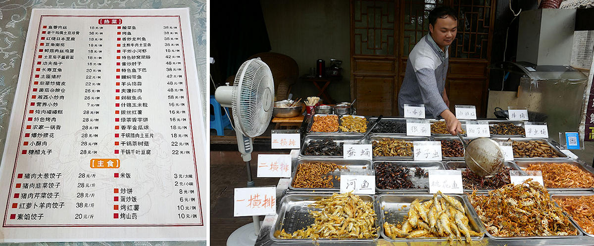 Der tägliche Überlebenskampf: Die Menükarte in den Restaurants ist dabei nicht unbedingt hilfreich, und dem Angebot der Strassenstände traut man auch nicht ohne Weiteres.