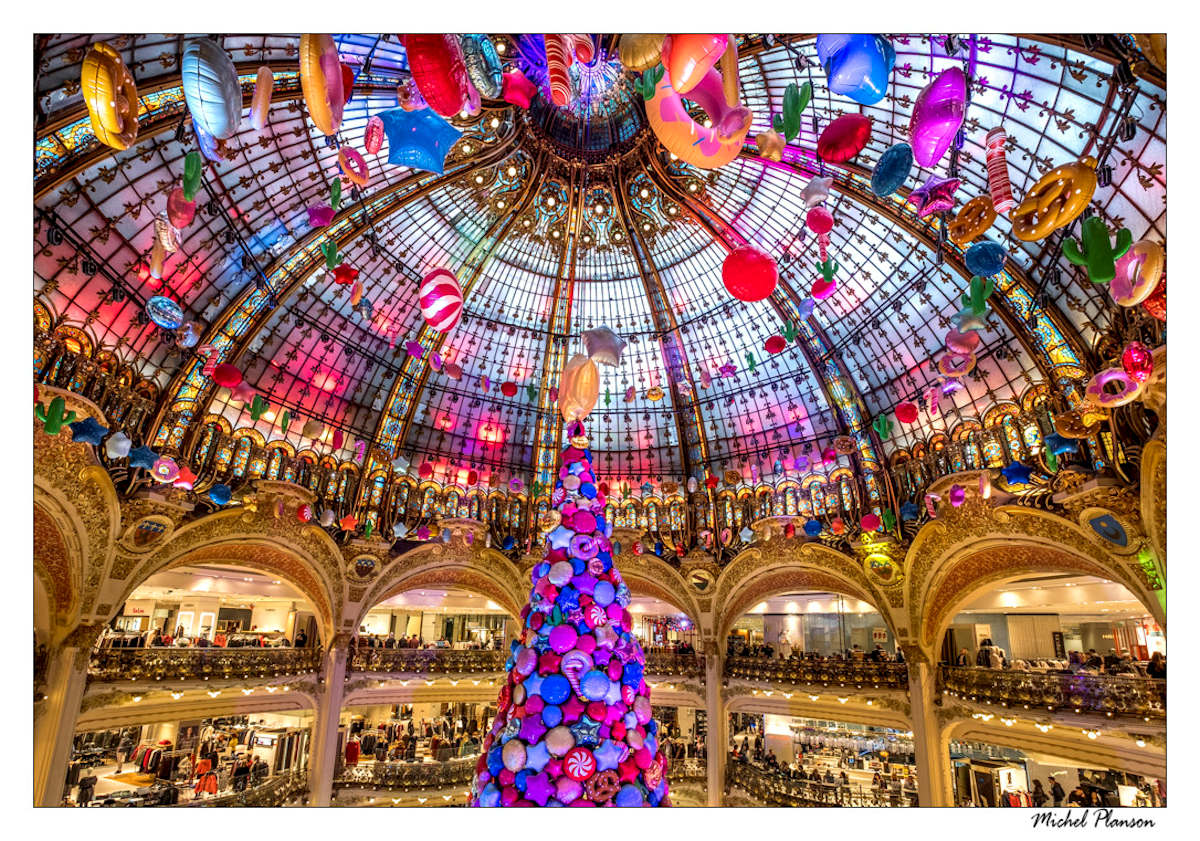 Weihnachtsgruss aus Paris von Michel Planson. Es zeigt den weihnächtlich geschückten Dôme der Galeries Lafayette.