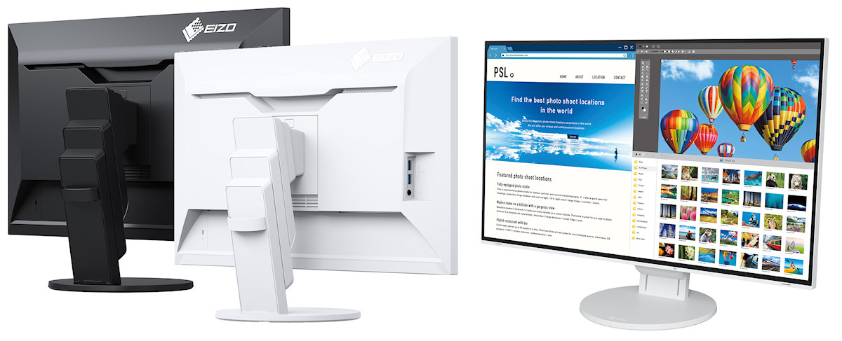 Den Eizo FlexScan EV2785W gibt es in Schwarz oder in Weiss. Sein nahezu rahmenloses Design (1 mm Rahmendicke) erweist sich als vorteilhaft, wenn mehrere Monitore kombiniert werden sollen.