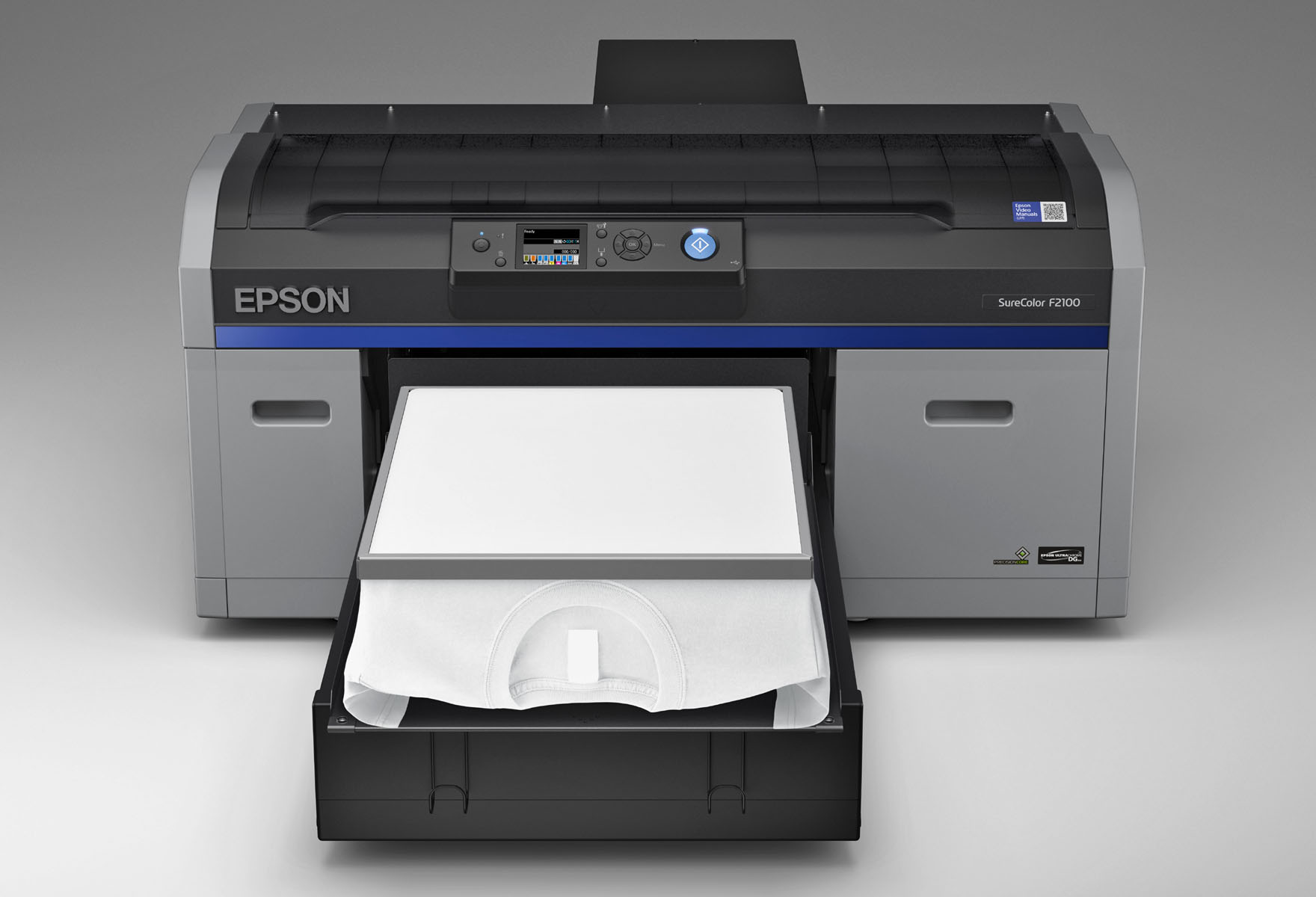 Epson stellt mit dem SureColor SC-F2100 einen neuen Drucker für den Direktdruck auf kleiner Textilien vor. Der neue SureColor produziert hochwertige Farbdrucke auf einer Vielzahl Artikel wie T-Shirts, Sweatshirts, Poloshirts und Tragetaschen. Der SureColor SC-F2100 ist Nachfolger des erfolgreichen SureColor SC-F2000 und bietet eine Vielzahl Verbesserungen wie eine noch höhere Produktionsgeschwindigkeit und Zuverlässigkeit bei geringeren Gesamtbetriebskosten. Auch die mitgelieferte Software Garment Creator-Software wurde verbessert und erlaubt nun, eigene Entwürfe zu erstellen.