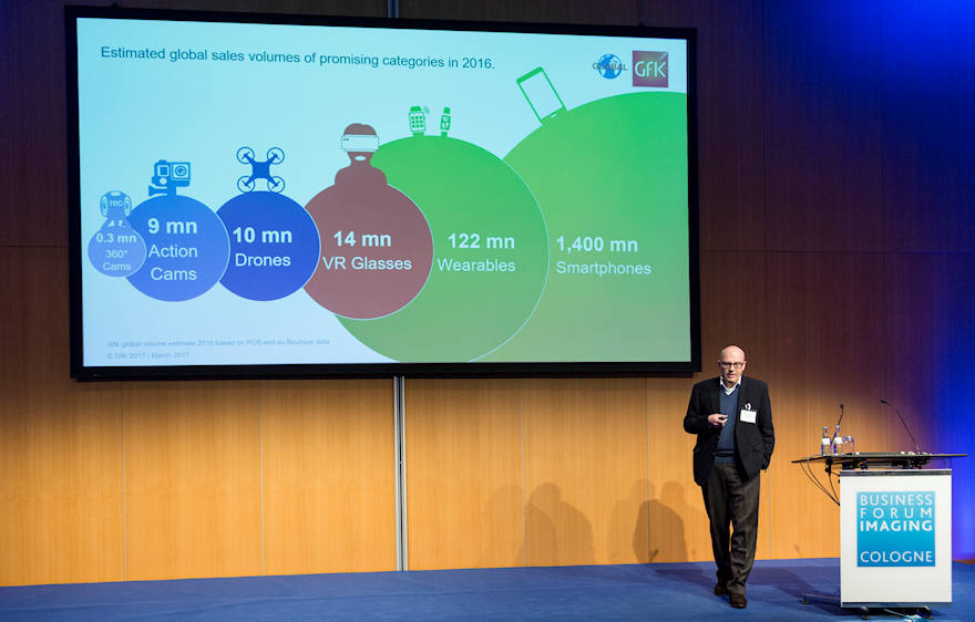 Das Business Forum Imaging Cologne vermittelt aktuelle Marktzahlen und Zukunftsperspektiven mit interessanten Zahlen (im Bild Heribert Tippenhauer, Global Director, Photo, Office and Stationery, GfK)