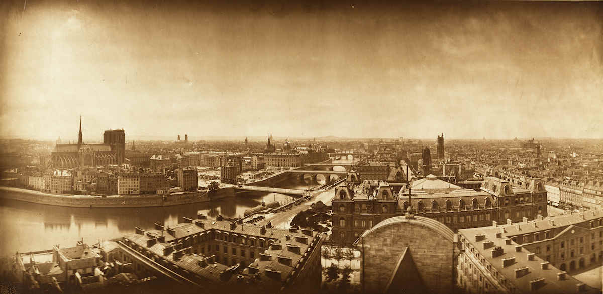 Adolphe Braun, «Panorama von Paris mit der Ile de la Cité und dem Hôtel de Ville», 1867, Kohledruck.