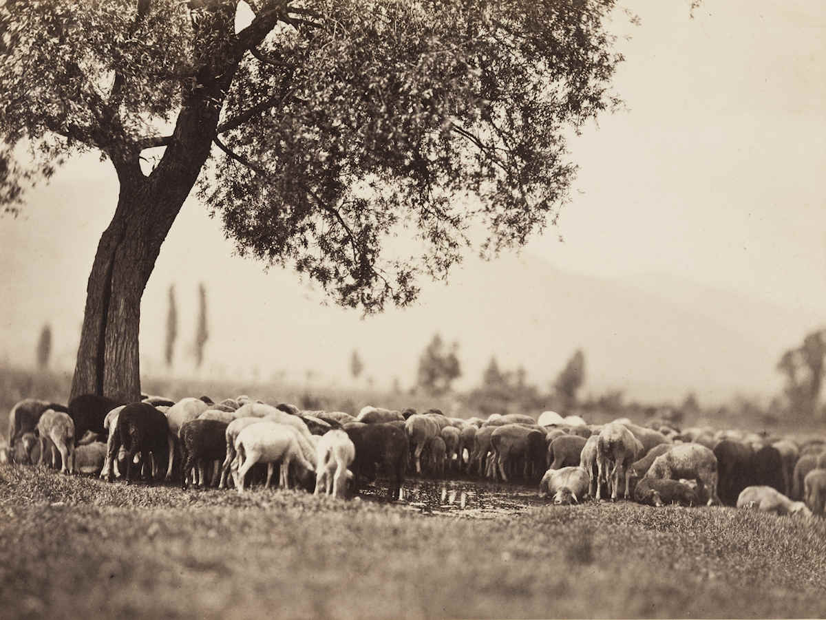 Adolphe Braun, «Troupeau de moutons s’abreuvant» um 1858, Albuminprint. (Sammlung Münchner Stadtmuseum)