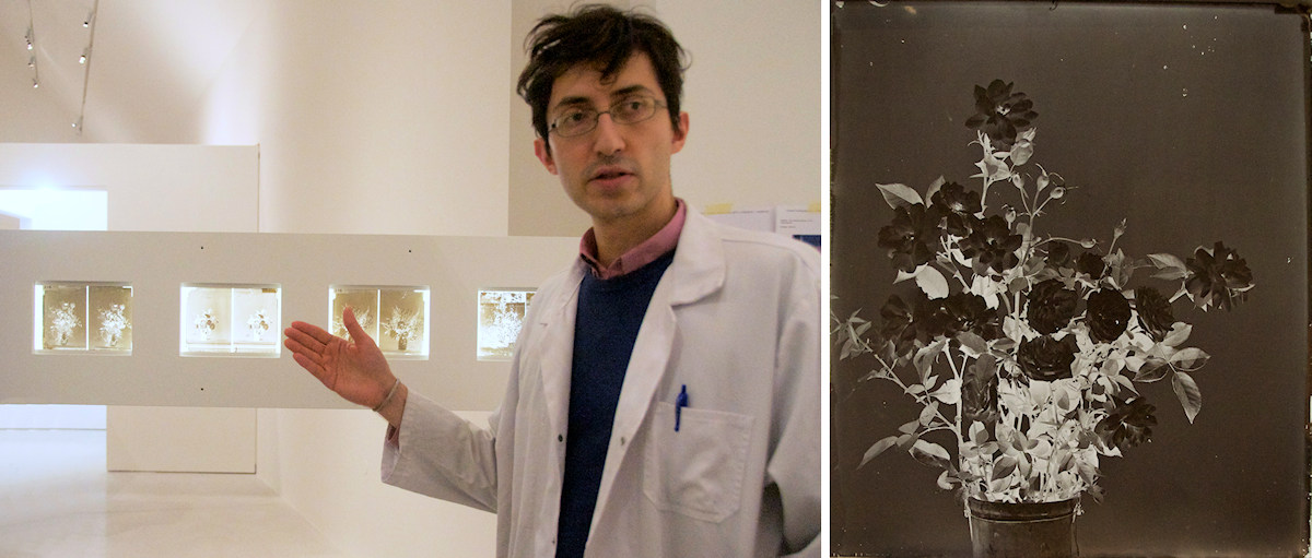Raphaël Mariani, Kurator der Fotoausstellung zeigt Originalnegative von Adolphe Braun (Foto: Jürg-Peter Lienhard)