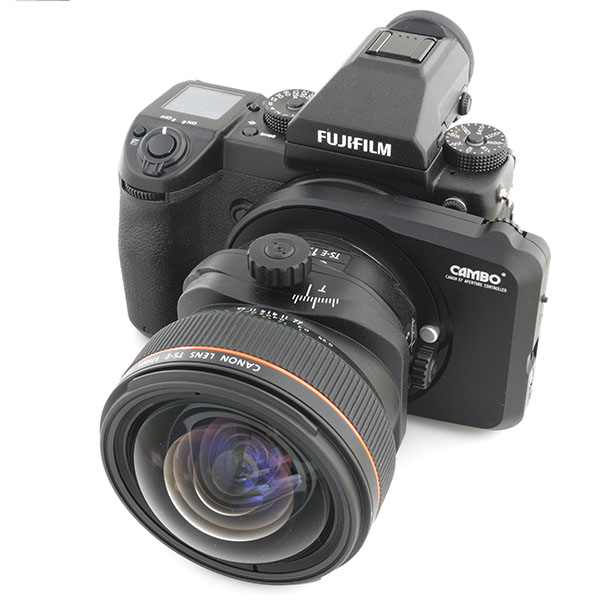 Mit dem «Cambo CA-GFX»-Adapter für Objektive mit dem «Canon EF»-Anschluss steht die Funktion dagegen zur Verfügung. Dies liegt wohl daran, dass zwischen Adapter und Kamera kein Datenaustausch stattfindet, sondern lediglich zwischen Adapter und Objektiv. Mit dem Cambo-Adapter sind AF, Datenübertragung oder Objektivsteuerung ab Kamera nicht möglich; das Einstellen der elektrischen Blende erfolgt am Adapter, der dafür mit einem eingebauten Akku versehen ist.