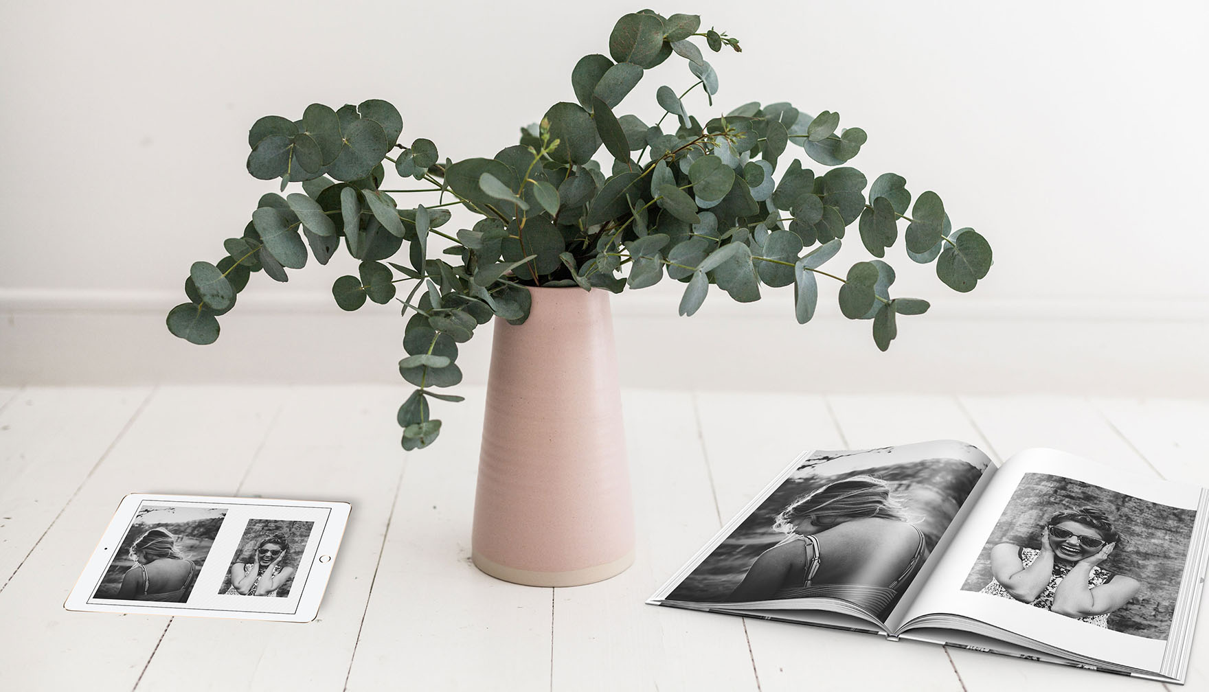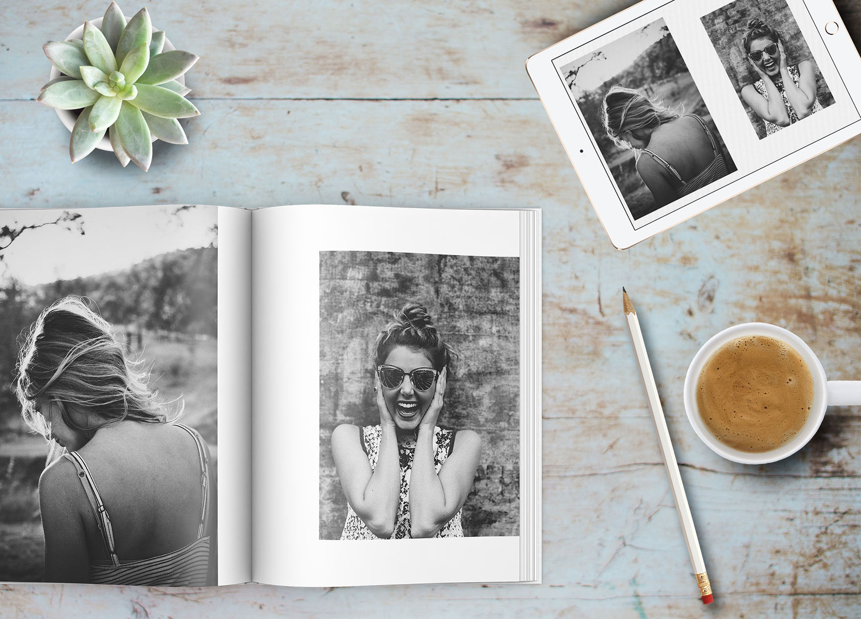 Gedrucktes Fotobuch und E-Book-Variante auf einem iPad. Bei Bookfactory kann man optional zum gedruckten Fotobuch eine Kopie als E-Book für Compi, Handy und Tablet bestellen, um das Buch so stets mitzuführen und/oder zu teilen.