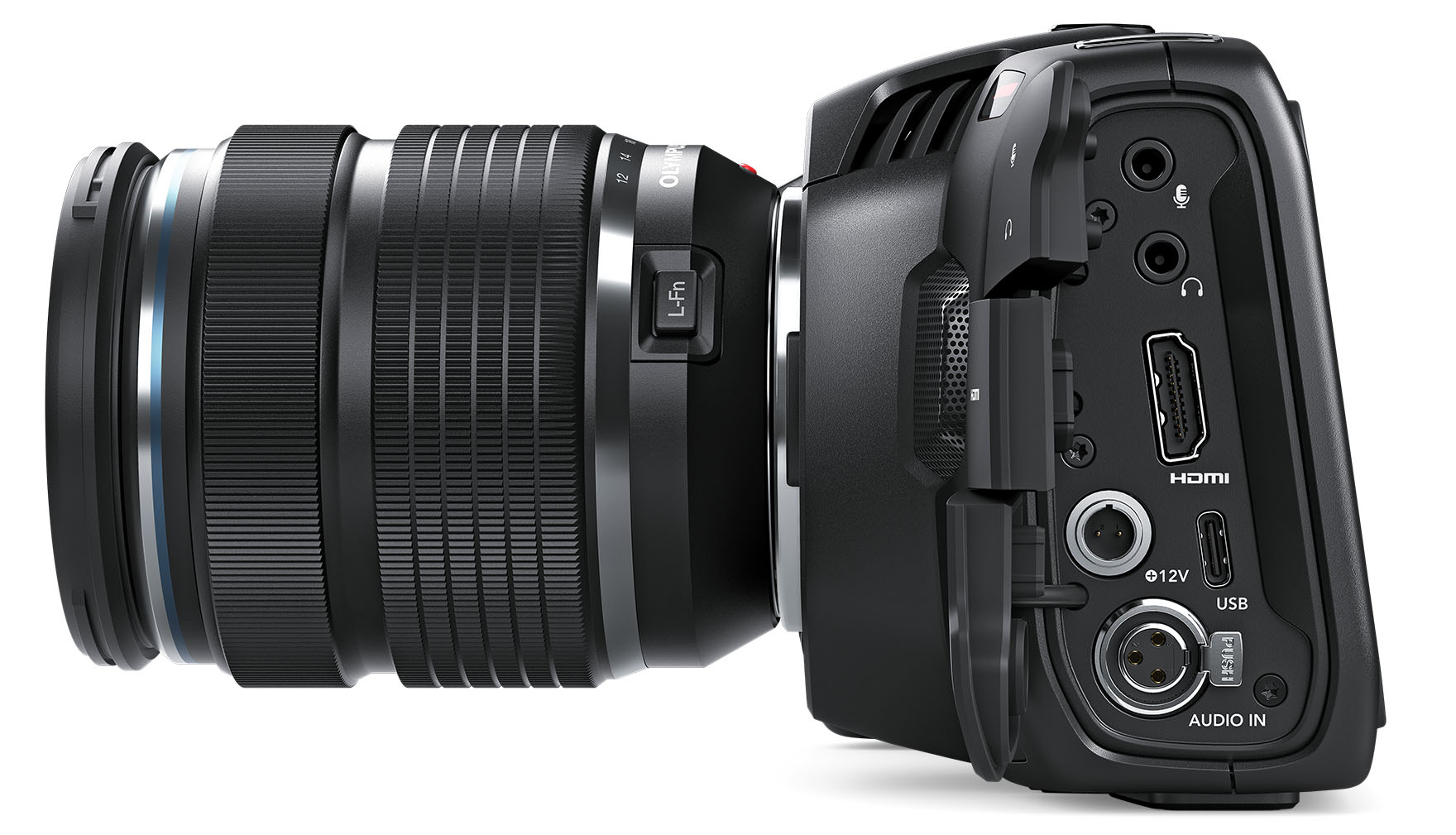 Die PCC 4K steckt voller Features. Geboten werden neben dem MFT-Objektivanschluss ein 5 Zoll grosser Touchscreen-Monitor, die Aufzeichnung in 10-Bit-ProRes und 12-Bit-RAW, 3D-LUTs, vier integrierte Mikrofone, ein Mini-XLR-Audioanschluss mit Phantomspeisung, die kabellose Kamerasteuerung per Bluetooth, ein Ausgang für die HDMI-Bildkontrolle am Set und vieles mehr.