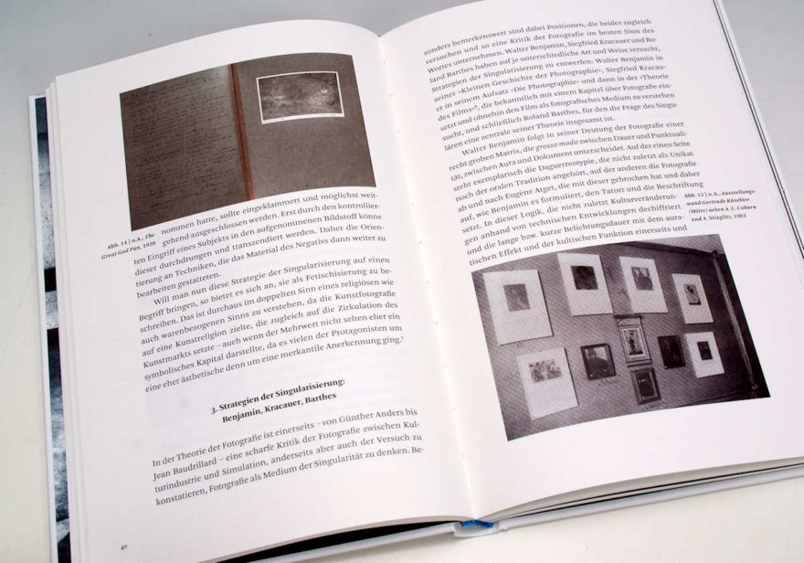 Bernd Stiegler zeigt in seinem Text «Das Glück der Reproduktion und die Suche des Singulären» auf, wie fliessend die Grenzen zwischen Unikat und Reproduktion in der Geschichte und auch in der Theorie der Fotografie sein können und zieht dabei verschiedene interessante Bildbeispiel aus der Geschichte der Fotografie heran.