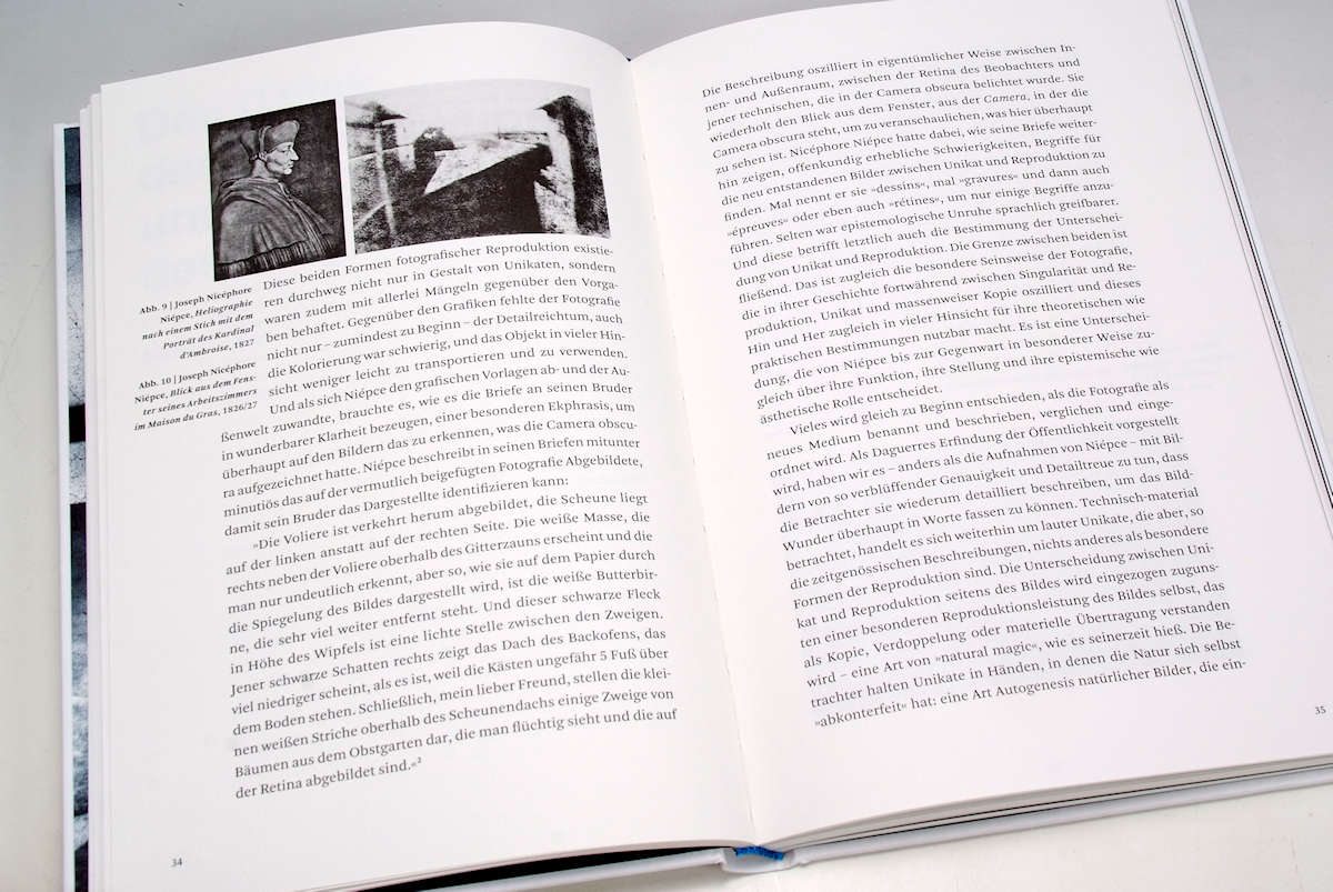 Bernd Stiegler zeigt in seinem Text «Das Glück der Reproduktion und die Suche des Singulären» auf, wie fliessend die Grenzen zwischen Unikat und Reproduktion in der Geschichte und auch in der Theorie der Fotografie sein können und zieht dabei verschiedene interessante Bildbeispiel aus der Geschichte der Fotografie heran.