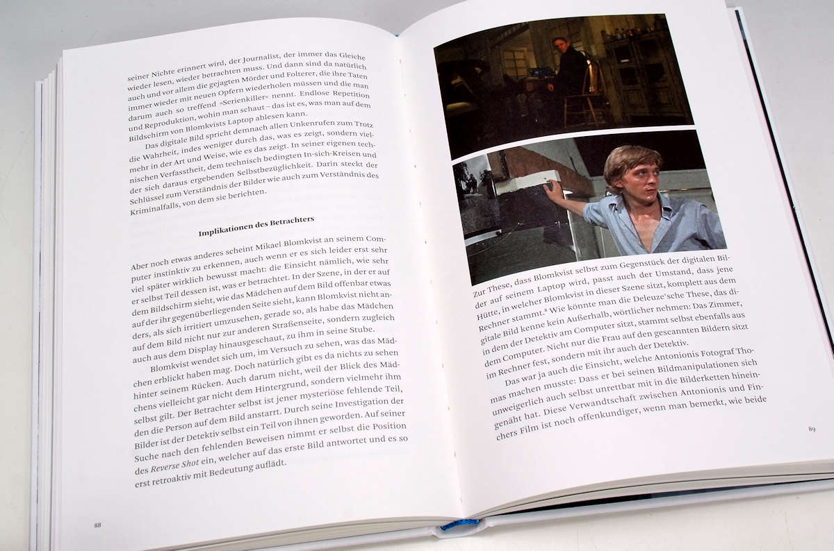 Johannes Binotto zieht in seinem Aufsatz «Revers Shots: vom Wiedersehen der Fotografie in Film» als Beispiele die beiden Filme «Blow up» und «The Girl with the Dragon Tattoo» heran, um den filmischen Rückblick – eben den Reverse Shot – auf die Fotografie zu zeigen und wie sich Fragen nach der Reproduzier- und Lesbarkeit im Zuge der Entwicklung von der analogen zur digitalen Fotografie stellen.