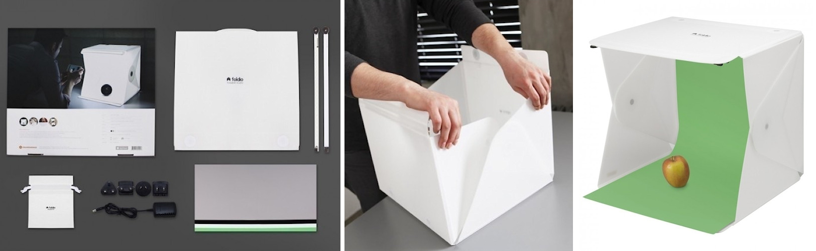 Immer häufiger kommt man in die Lage Gegenstände auswärts zu fotografieren. Um dabei den Aufwand so gering wie möglich zu halten, hat Orangemonkie die Foldio 2 Aufnahmebox geschaffen.