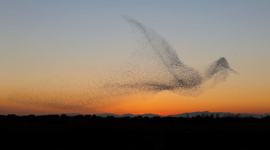 Das Gewinnerbild des letztjährigen Fotowettbewerbs der Schweizerischen Vogelwarte Sempach: Daniel Biber «Starenschwarm»