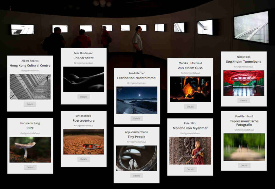 10 Ausstellerinnen und Aussteller zeigen ihre Bilder in einer kreisrunden Bildschirm-Arena im Drei-Minuten-Turnus. So sind in kurzer Zeit interessante Bildfolgen zu sehen, von denen jede eine besondere Geschichte erzählt oder kreative Inspirationen weitergibt. Das Verweilen lohnt sich …
