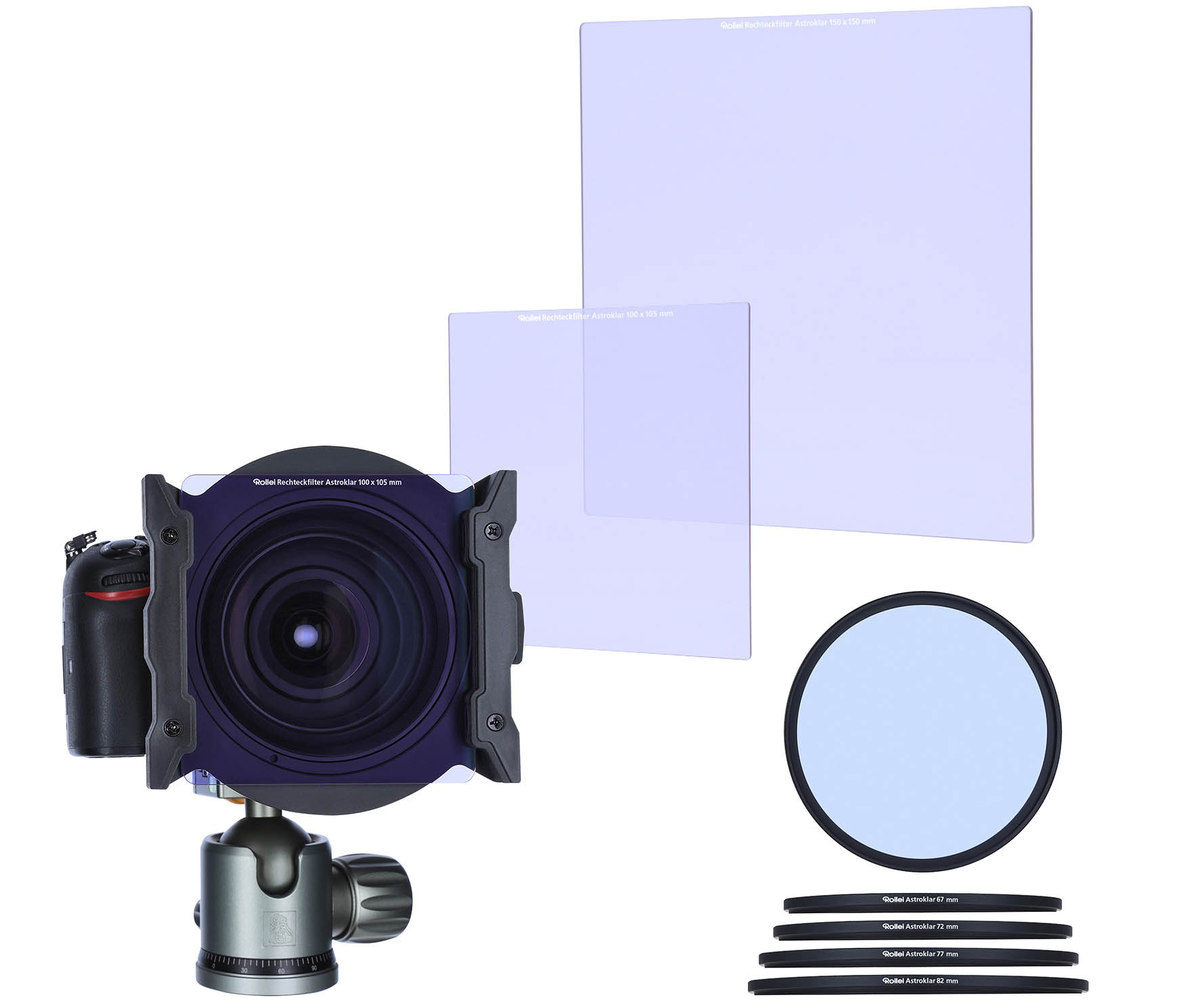 Den Rollei Astroklar Filter gibt es als rechteckige Einsteckfilter für Haltesysteme in den Formaten 100mm und 150mm sowie als runde Filter für vier gängige Filtergewinde von Objektiven.
