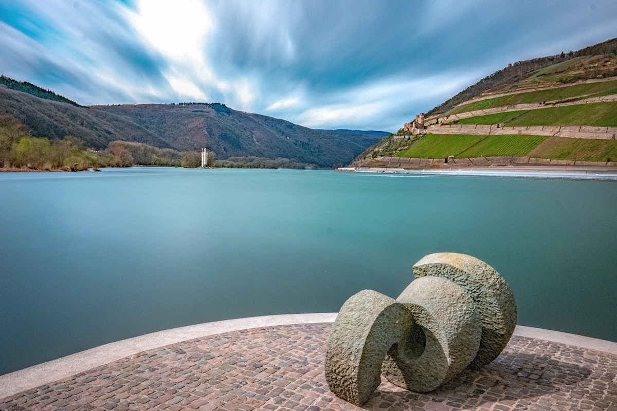 Beispielbild von B+W mit dem ND 4.5 Filter: Die spiegelglatte Wasseroberfläche und die Schlierenwolken sind nur mit einer extrem langen Belichtungszeit zu erreichen