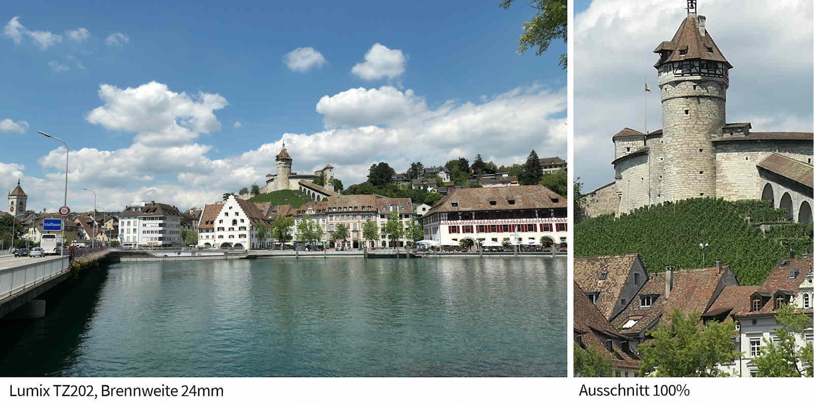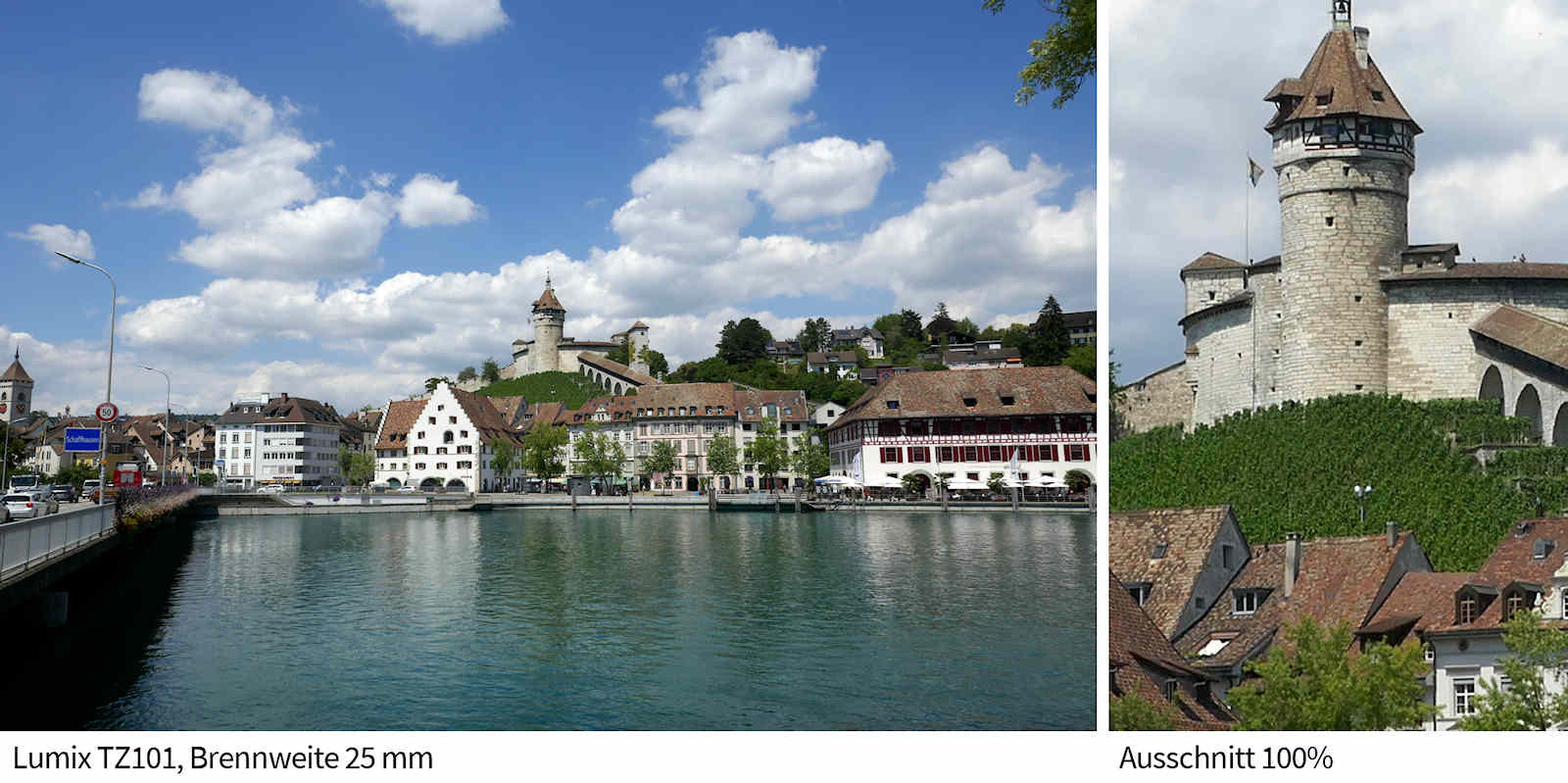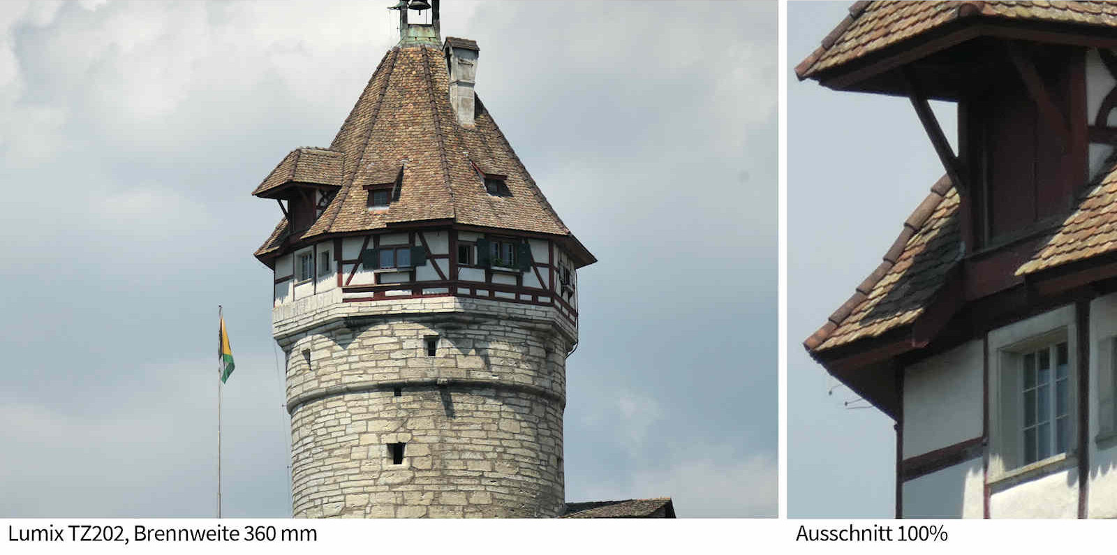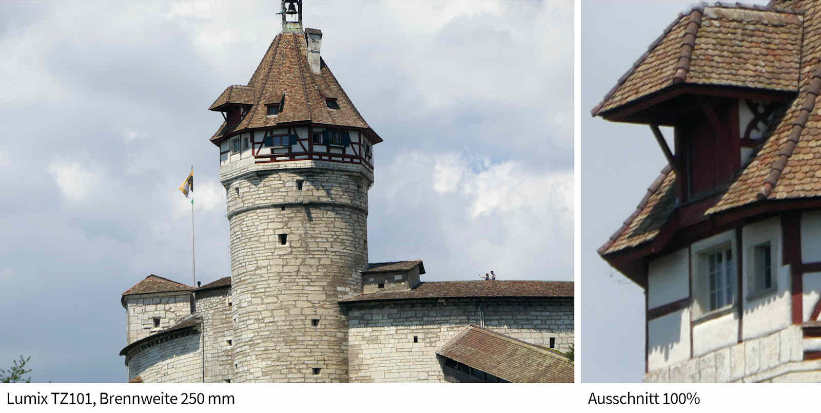 Die Vorgabe, anstelle des Zehnfachzooms ein Fünfzehnfaches für die TZ202 zu entwickeln, und dies bei gleicher Grösse und nahezu gleichem Gewicht, dürfte für die Optik-Konstrukteure von Leica eine echte Knacknuss gewesen sein. Kleines Detail: Das Zoomobjetiv der neuen TZ202 beginnt bei 24mm, dasjenige der TZ101 bei 25mm. Wohl nur ein Millimeter, der jedoch in der Weitwinkelwelt eine Rolle spielt, wie die Vergeichsaufnahmen weiter untern zeigen.