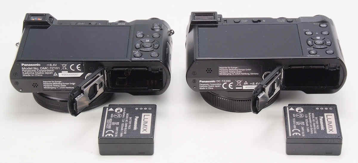 Beide Kameras (links die TZ101, rechts die TZ202) verwenden den gleichen Akku. Dieser reicht bei der TZ101 etwa für 300 Aufnahmen, bei der Tz202 etwas länger für rund 370 Bilder.