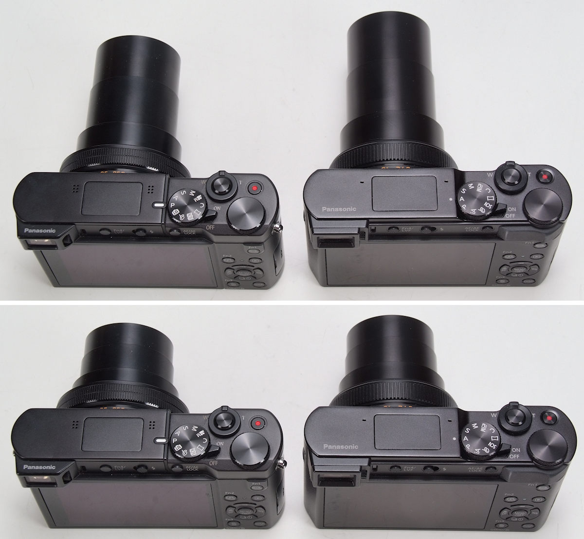 - Der Blitzentriegelungsknopf öffnet bei der TZ202 von links nach rechts, während dieser bei der TZ101 den Blitz in entgegengesetzter Richtung öffnet.