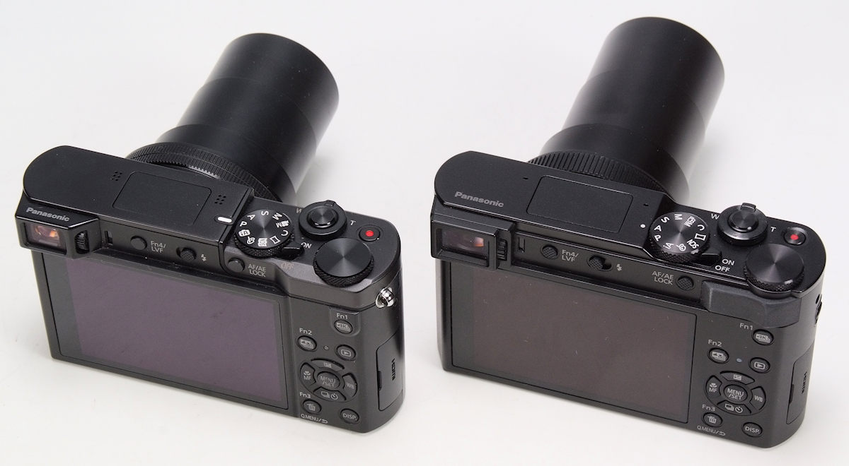 Längeres Zoom und besserer Sucher sind die wichtigsten Verbesserungen der TZ202 (rechts). Was kaum auffällt, in der Praxis aber vorteilhaft ist, ist die Gummi-Daumenauflage der TZ202 auf ihrer Rückseite
