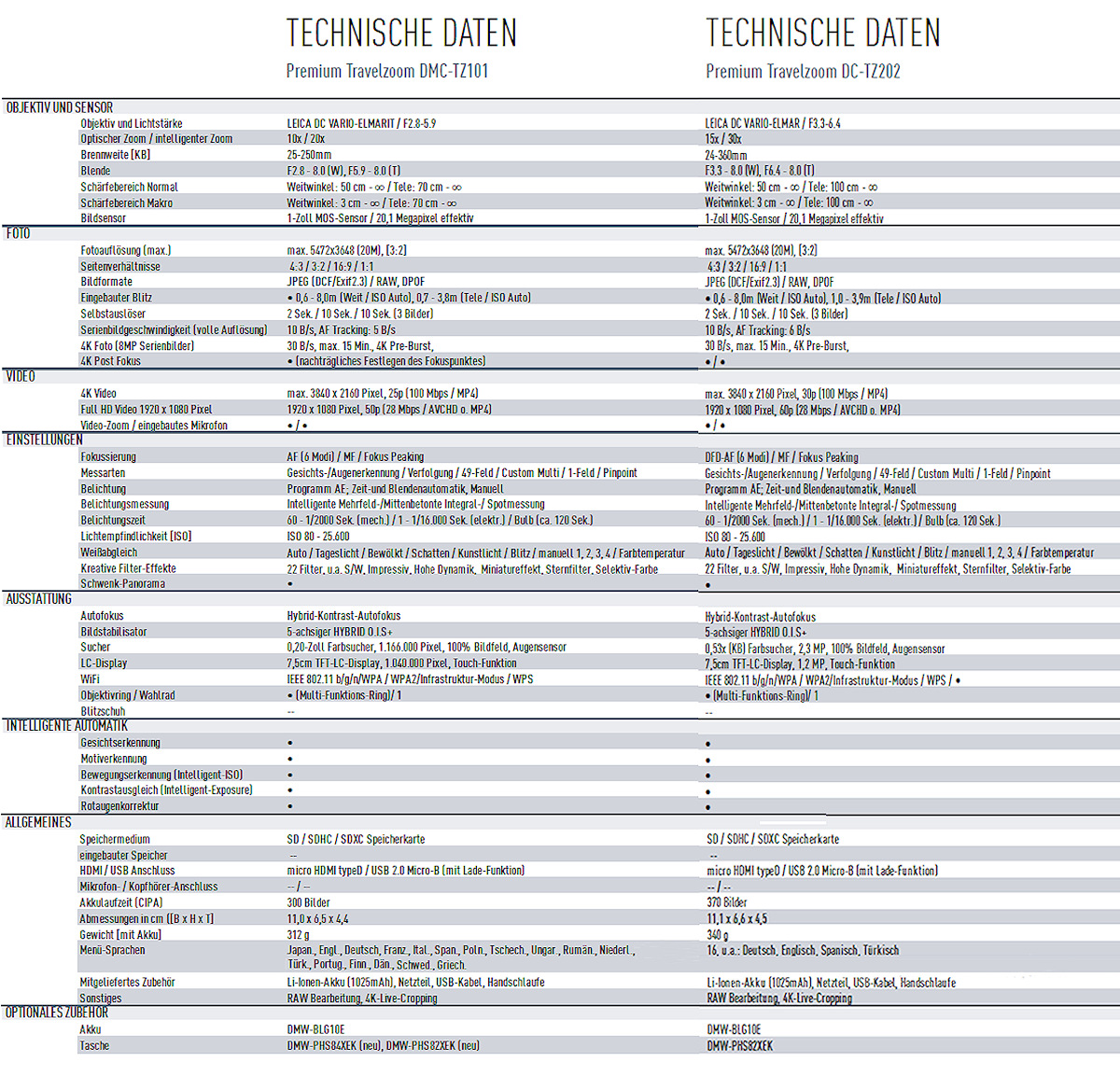 Weitere Informationen finden Sie bei Panasonic.ch über die TZ101 und hier über die TZ202